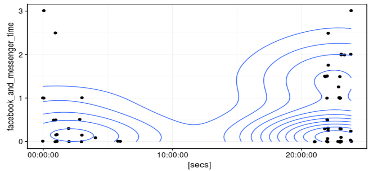 We see absolutely no relation bewteen the facebook usage habits and the bed time it do not seem to exist any relation between these two factors.